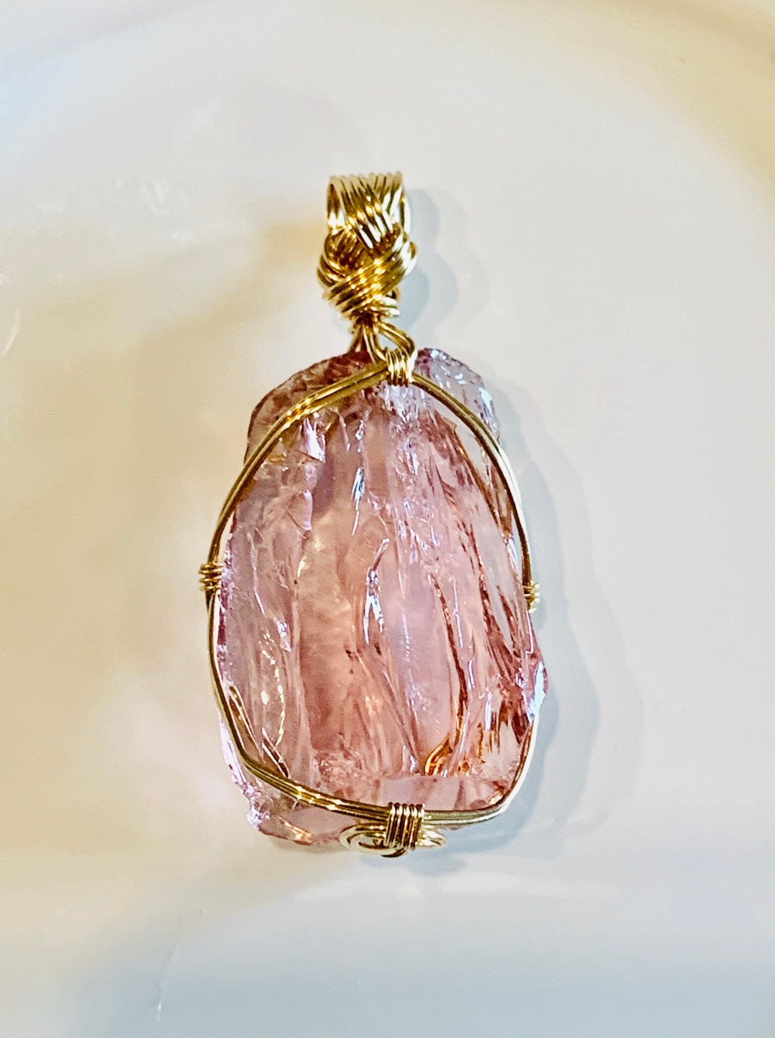 小さくて可愛いキャンディのようなピンクアンダラを14kgf のワイヤーでラッピングしてペンダントトップにいたしました♡