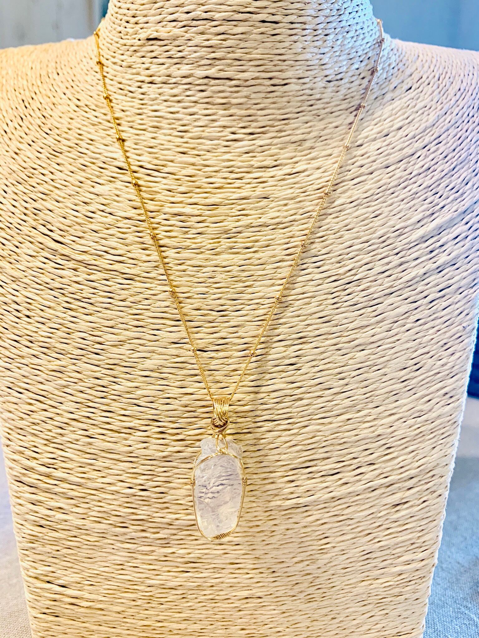 優美な乳白色、ホワイトオパールのアンダラクリスタルを 14kgfのワイヤーで巻いてペンダントトップにいたしました!